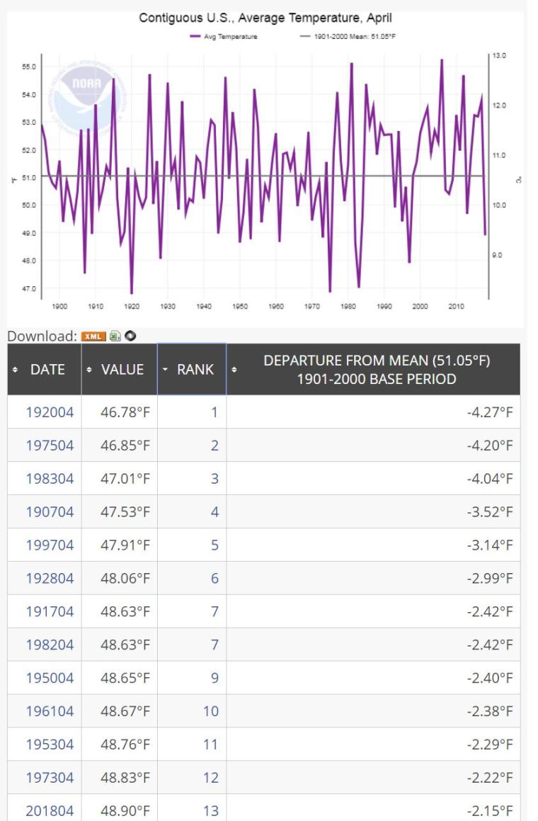 The NOAA ranks months temperature and precipitation based on the number of months from 1895. So 2012 was the 118th year. If a month is ranked 118 (as of 2012) then it was the warmest month from 1895 to 2012.