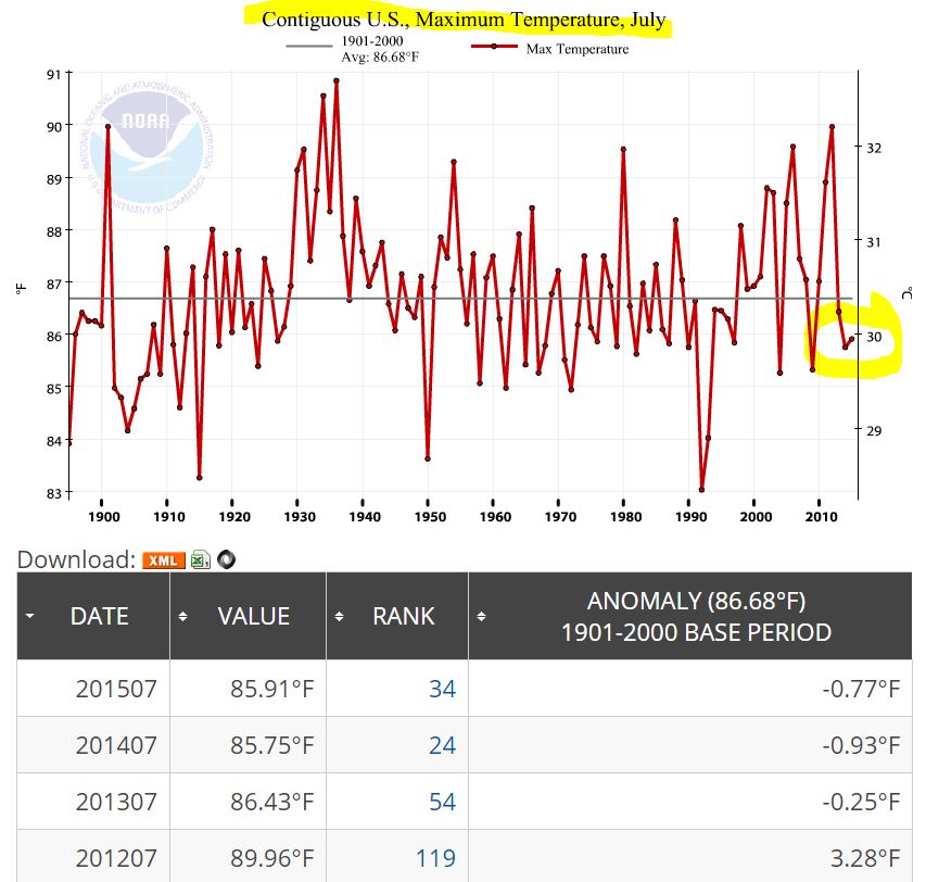 NOAA July 2015 – USA – Below Normal For 3rd Year in a Row