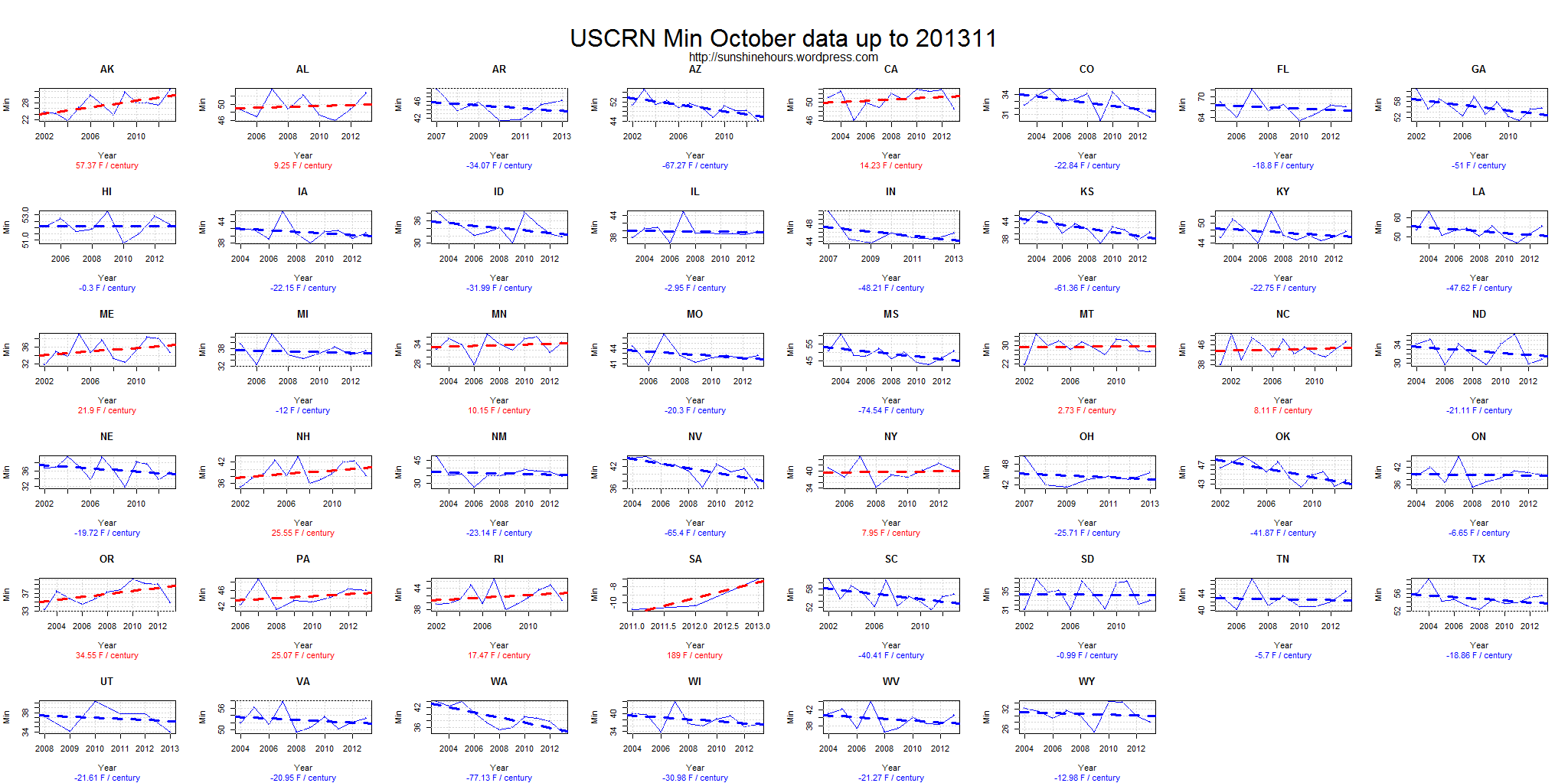 The USCRN is a new ‘state of the art’ United States Climate Reference Network. The USCRN “consists of 114 stations developed, deployed, managed, and maintained by the National Oceanic and Atmospheric Administration (NOAA) in the continental United States for the express purpose of detecting the national signal of climate change.”