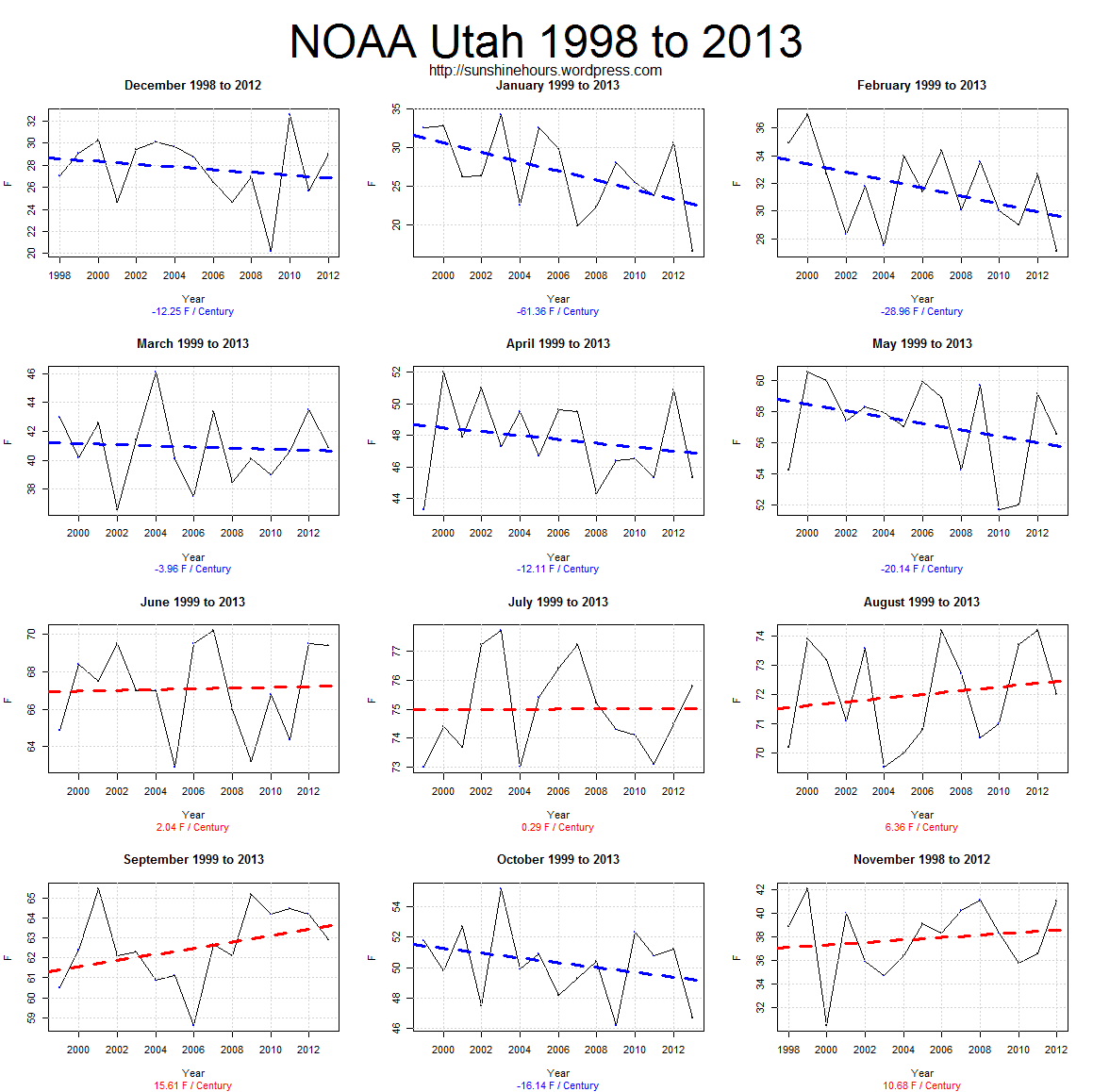 Alabama in January (for example) is cooling at -1.9F/Century since 1895. You can check NOAA’s data here if you like. I did, just to make sure.