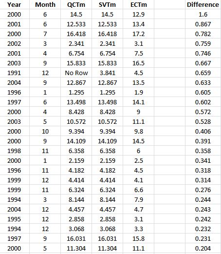 “Equal” counties had a mean temperature change of .0119C/decade.