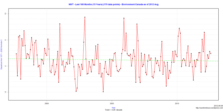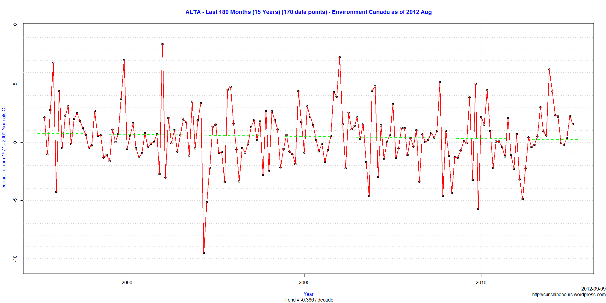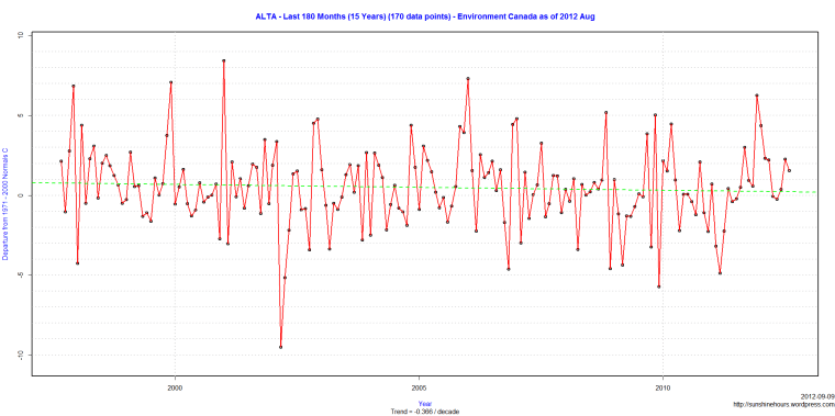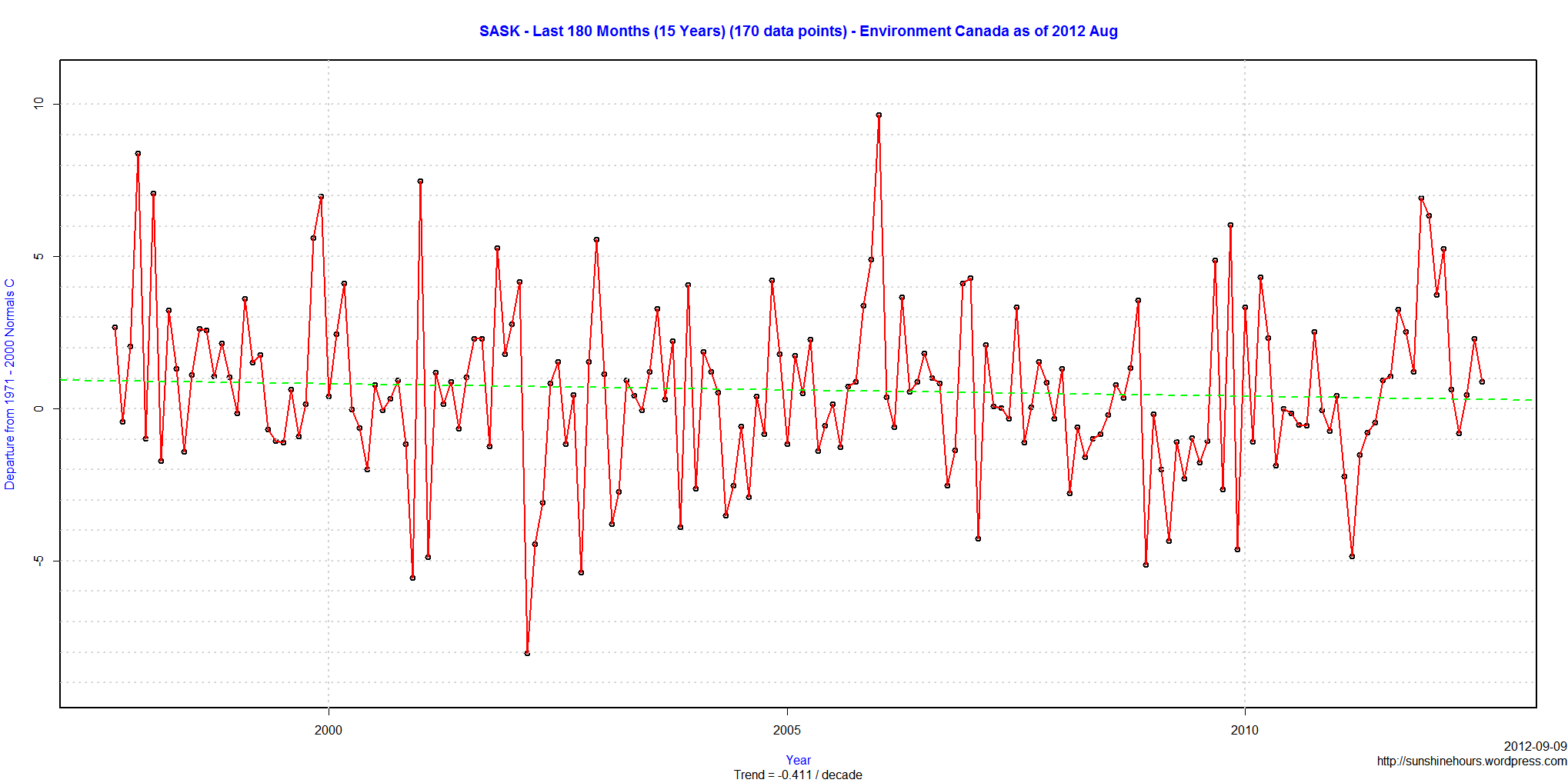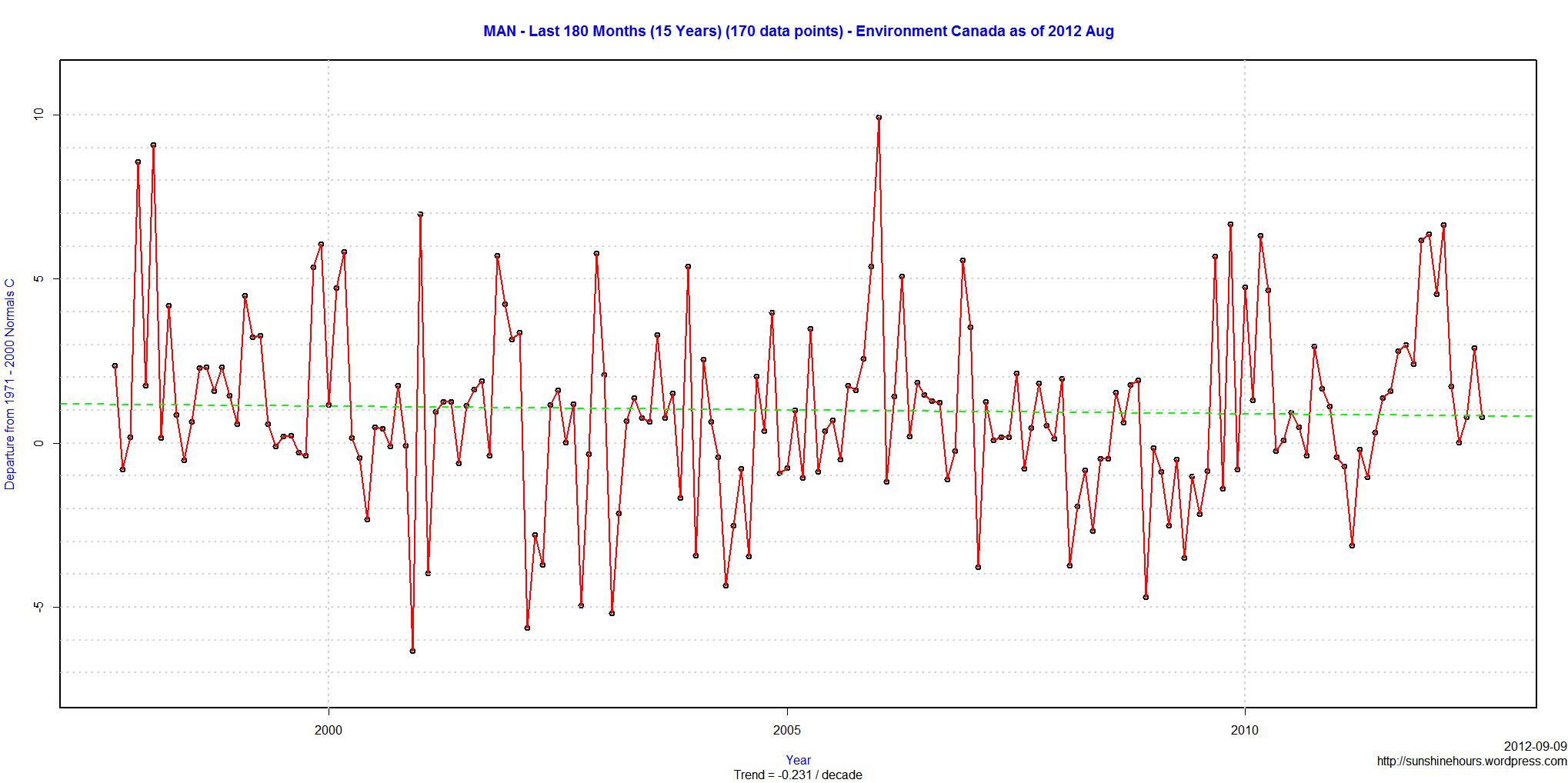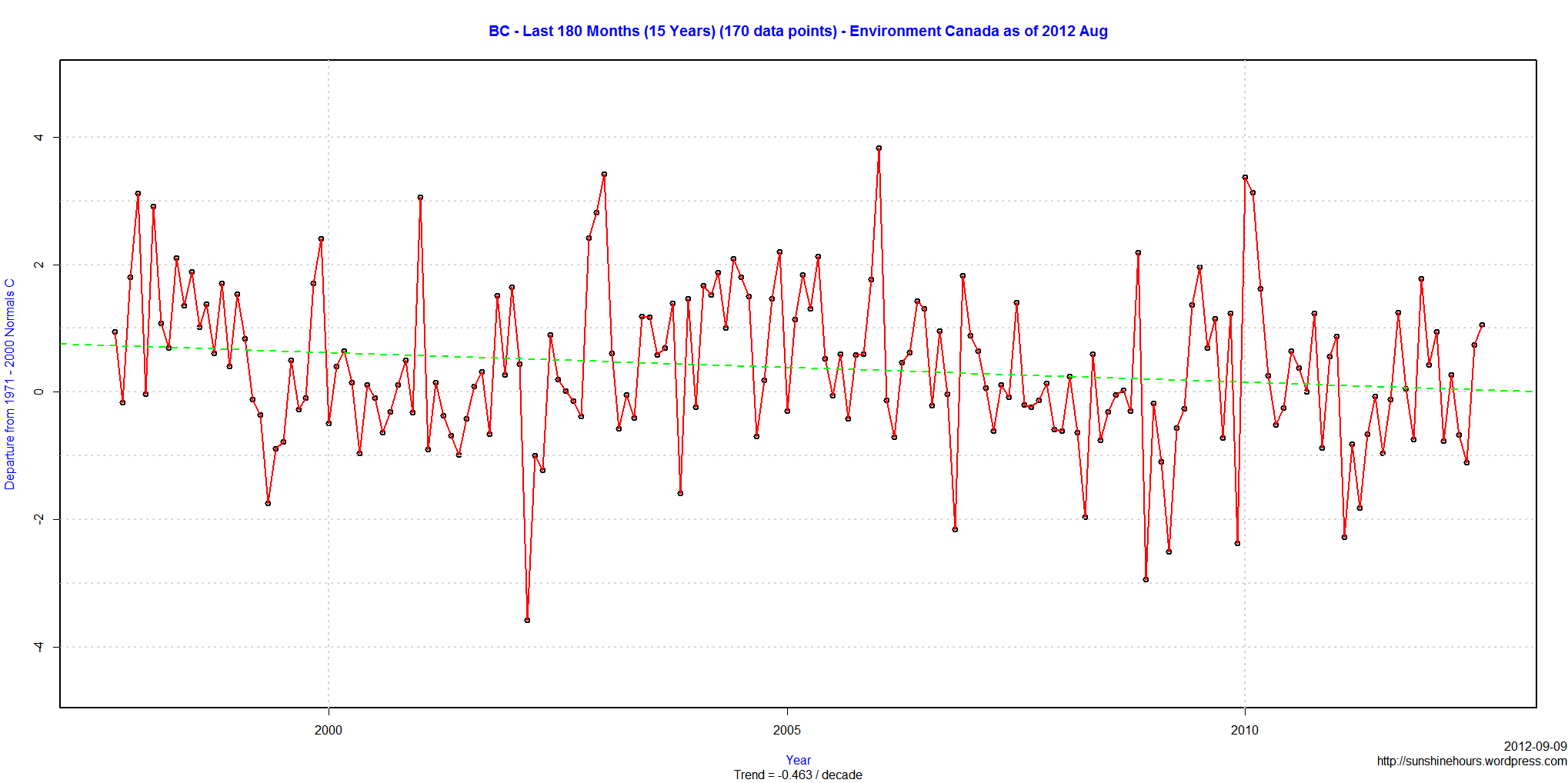 The data is slightly different from the BC post in that I now only use stations with Climate Normals and 170 out of 180 data points in  the last 180 months. In the case of BC it actually changes the cooling slightly.