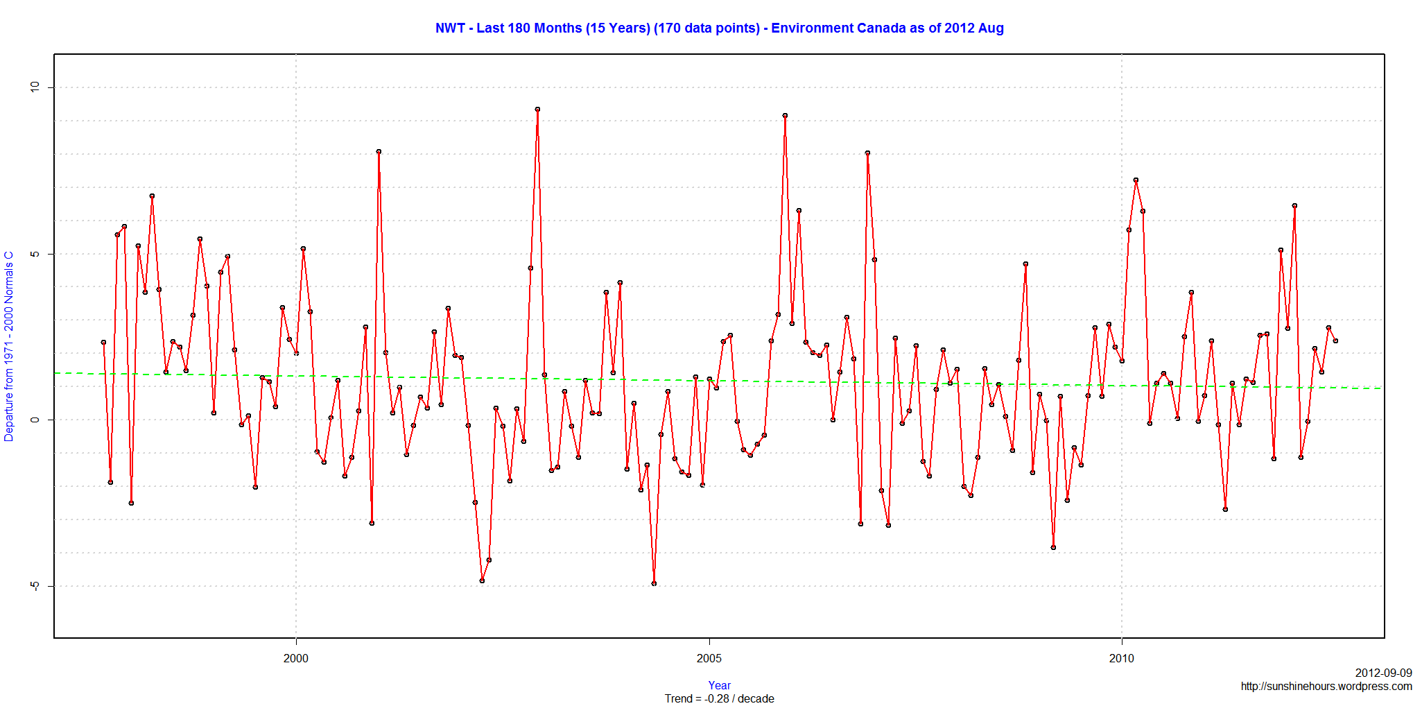 In addition to BC cooling over the last 15 years, so are the following Canadian Provinces and Territories.