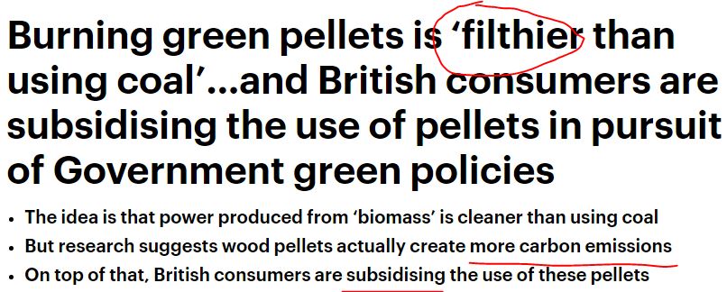 It is interesting that the Daily Mail is admitting that wood pellets are filthier than coal.