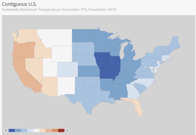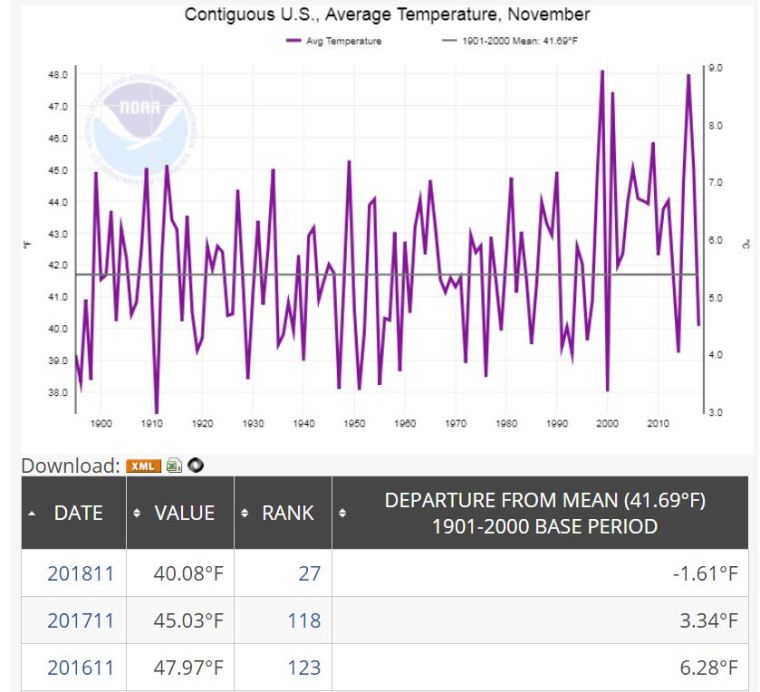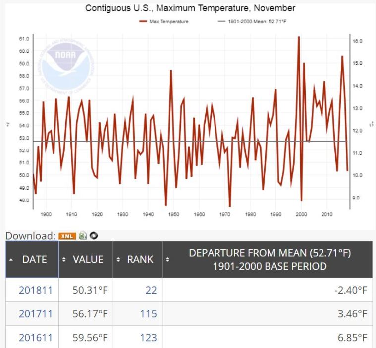 It was the 27th coldest November in terms of Average Temperature in the USA. (1 would be coldest)
