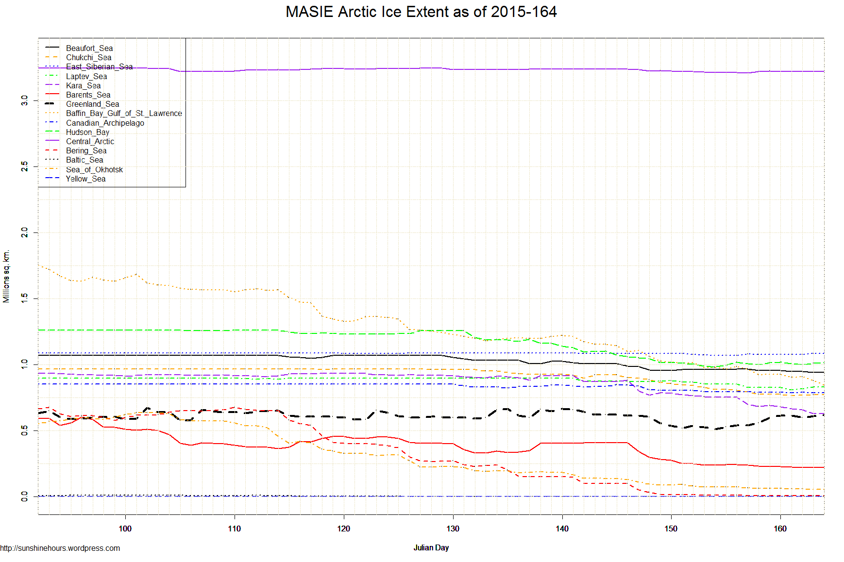 June 23 2014 MASIE Update – According to MASIE Arctic Sea Ice is up over the last 2 days