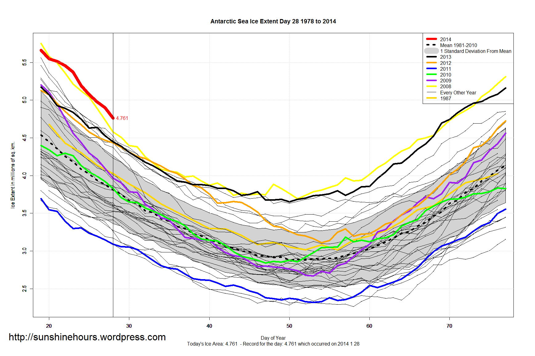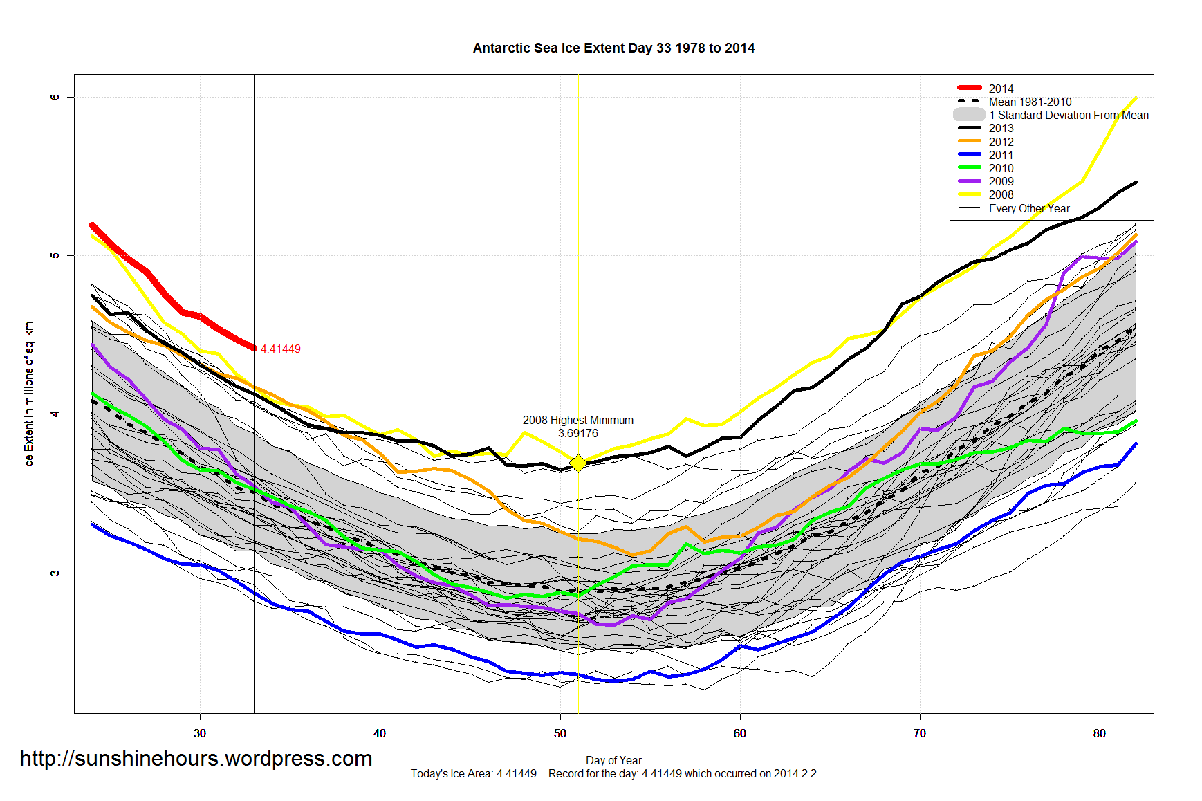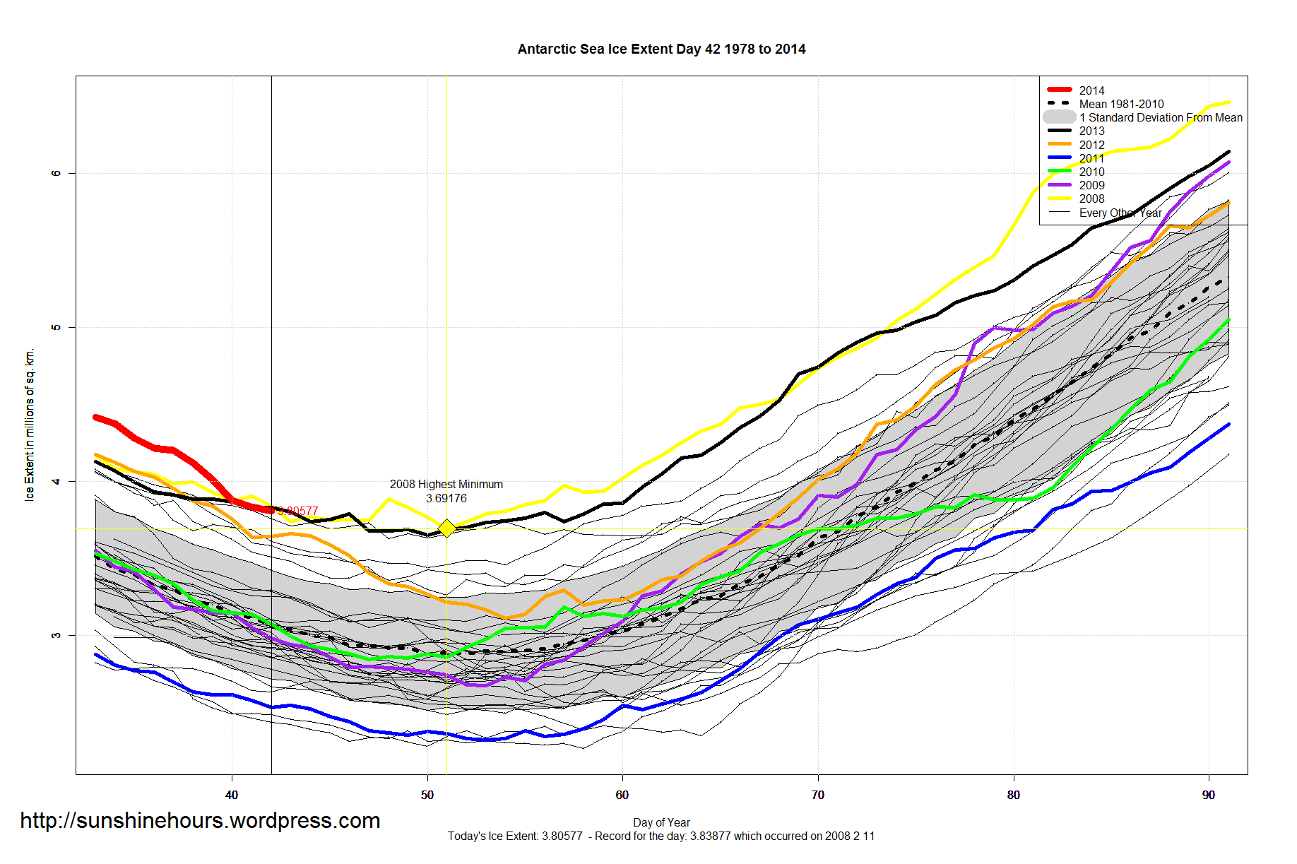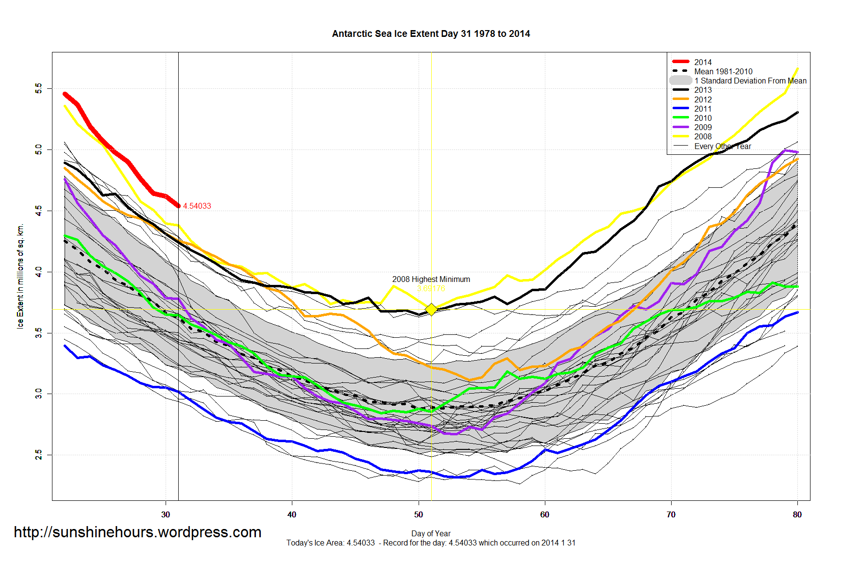 So day 46 could still turn out to be the day of the minimum Antarctic Sea Ice Extent for 2014. But it could still fall below that.