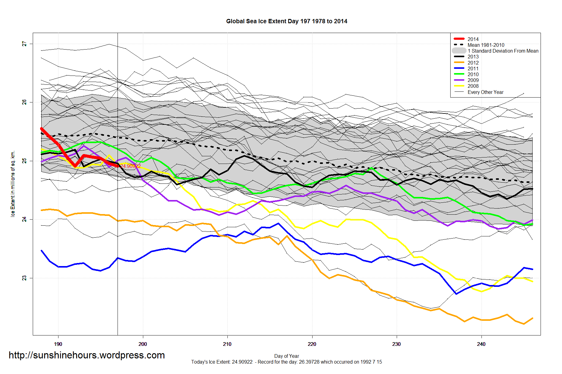 A quick update for sea ice extent for day 200 of 2014
