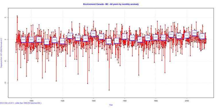 I downloaded monthly data from the Environment Canada (EC) websites. EC treats some stations as special and calculates anomalies against what they call Normals. As of today the Normals are calculated for 1971-2000 and I am using those special stations.