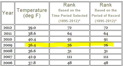 92 Marches were warmer than 2009. 2009 was 9.6F colder than March of 1934.