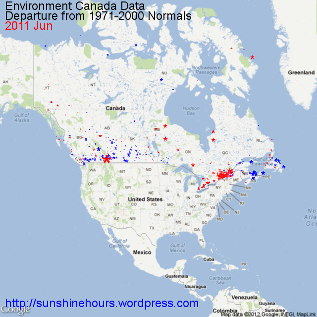 As you can see the recent heat wave that is making headlines is like a red wave that engulfs most of Canada and then retreats back to the north and eastern Canada.